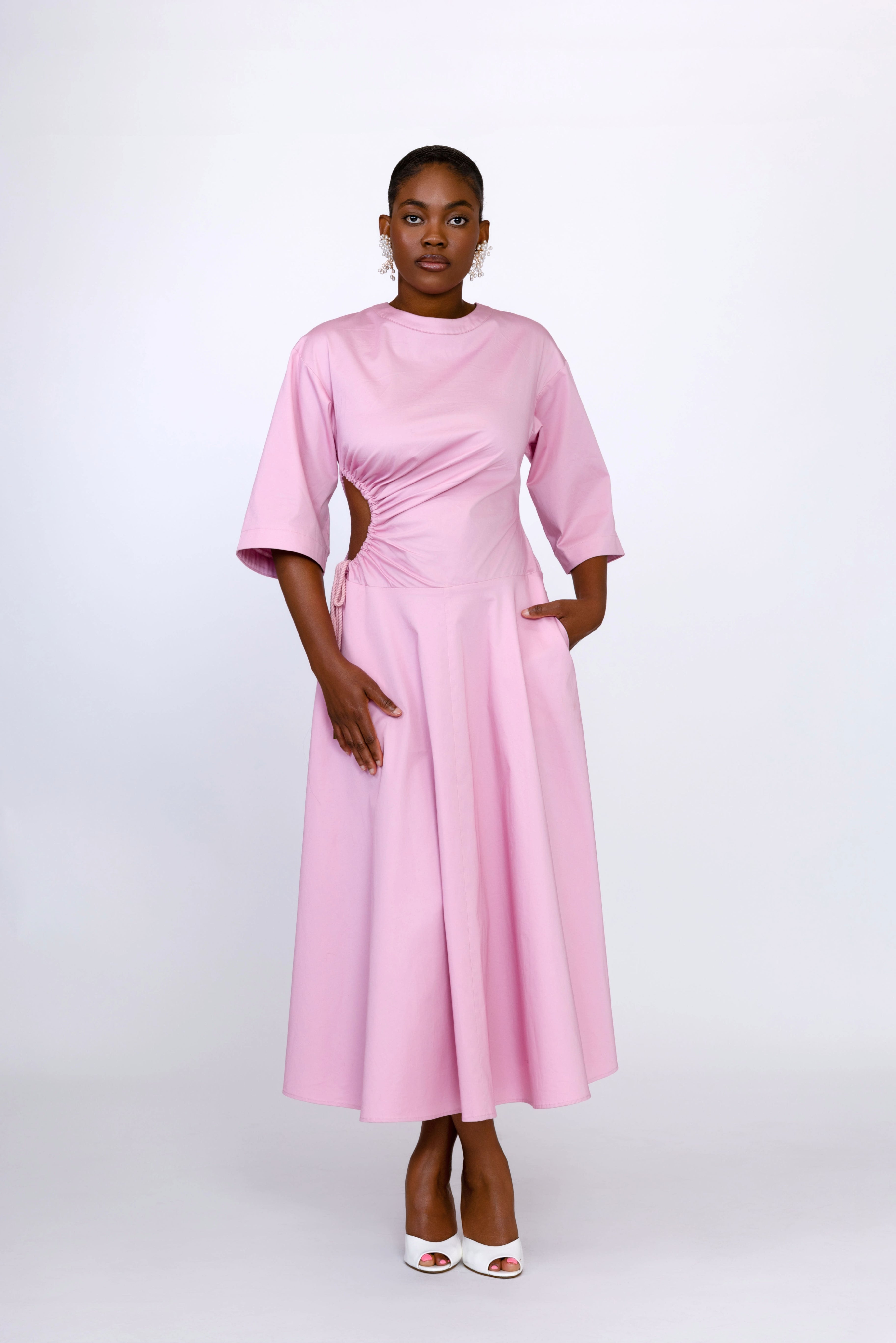 Amanda Cut Out Cotton Midi Dress In Pink Features