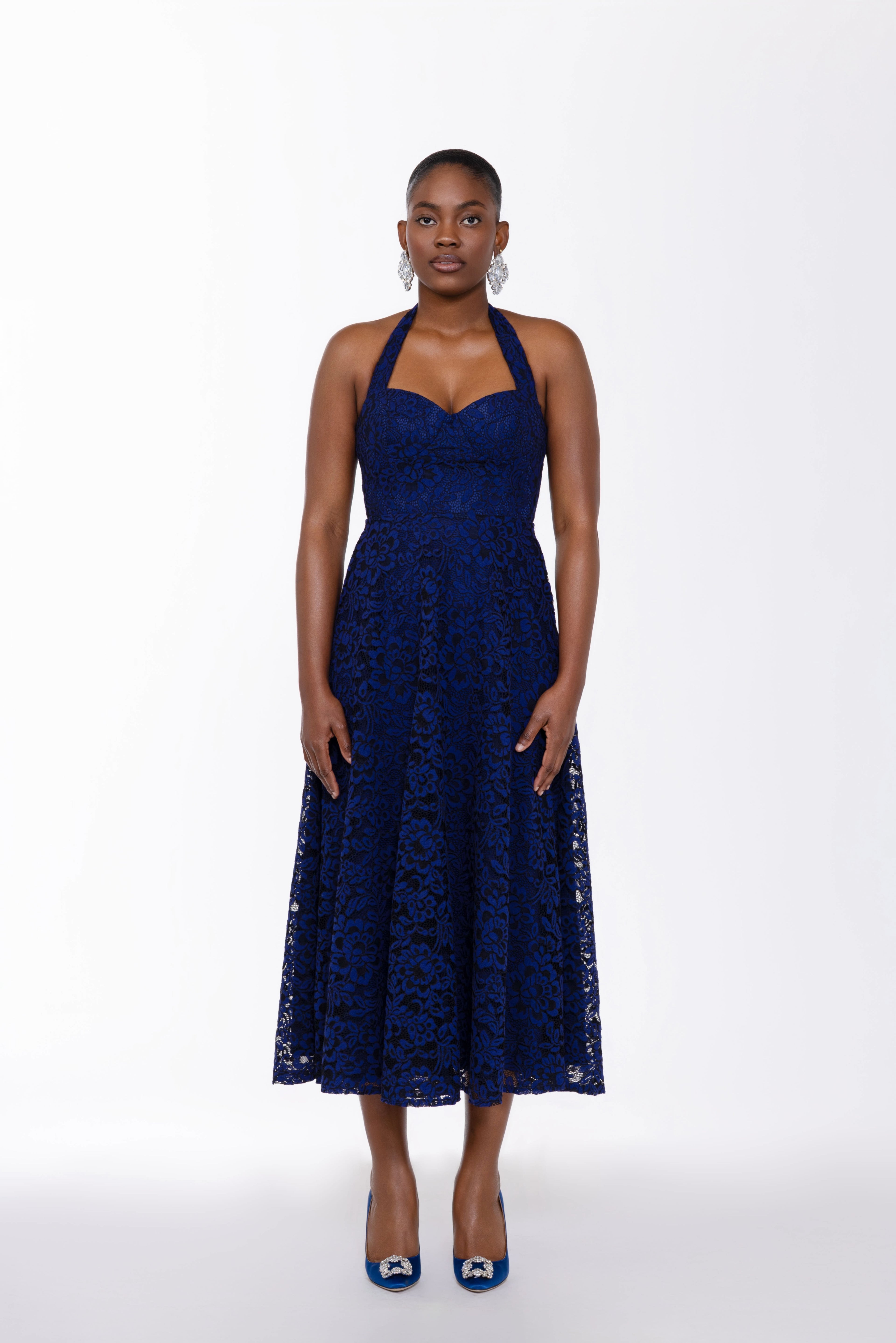 A vision of elegance, the Ashley fit and flare midi dress is cut from a contrast lace print. The upper features a bustier style bodice and the lower, a twirl worthy cut.