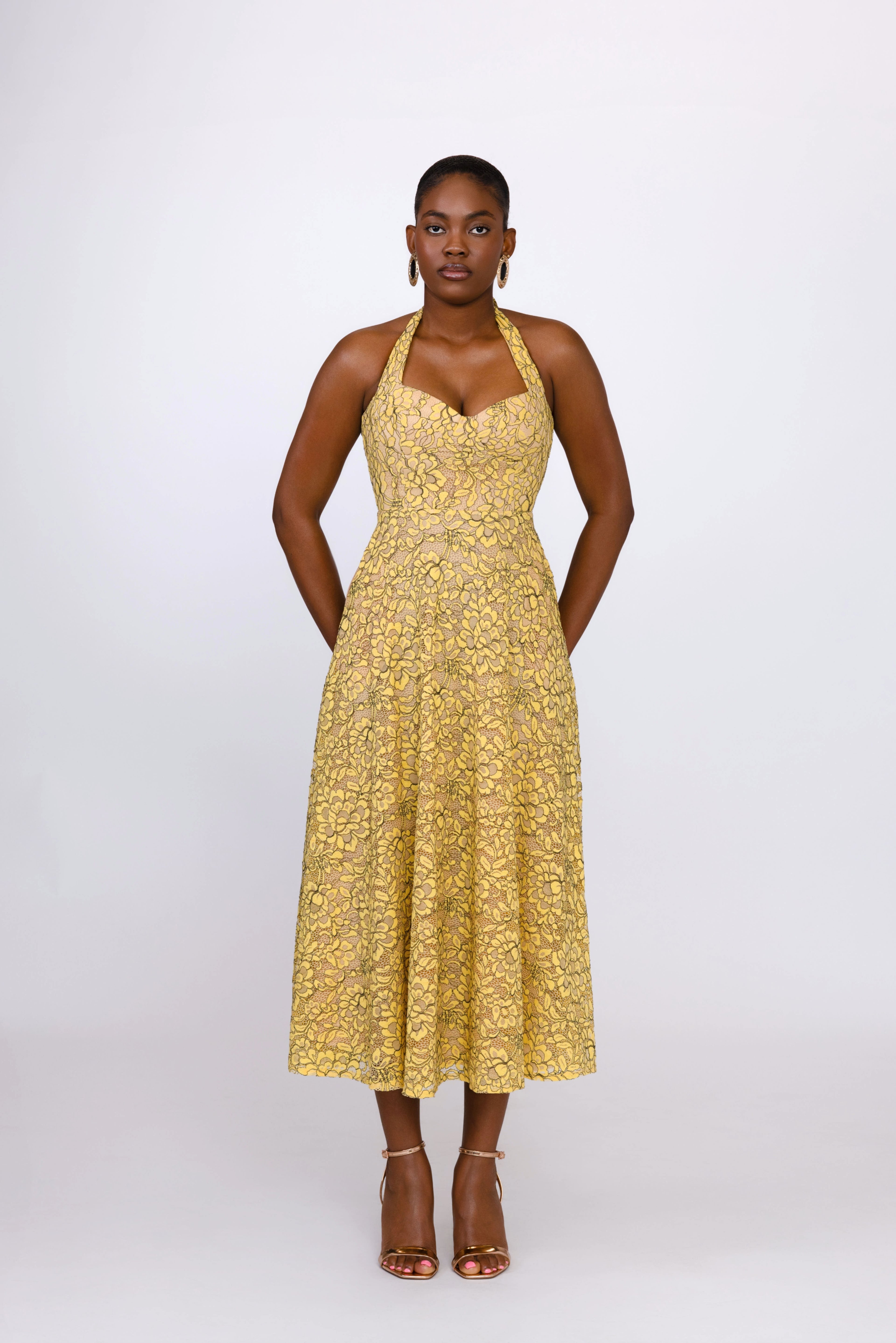 Ashley Lace Tie Midi Dress-Mustard Sale price$174.99 USD