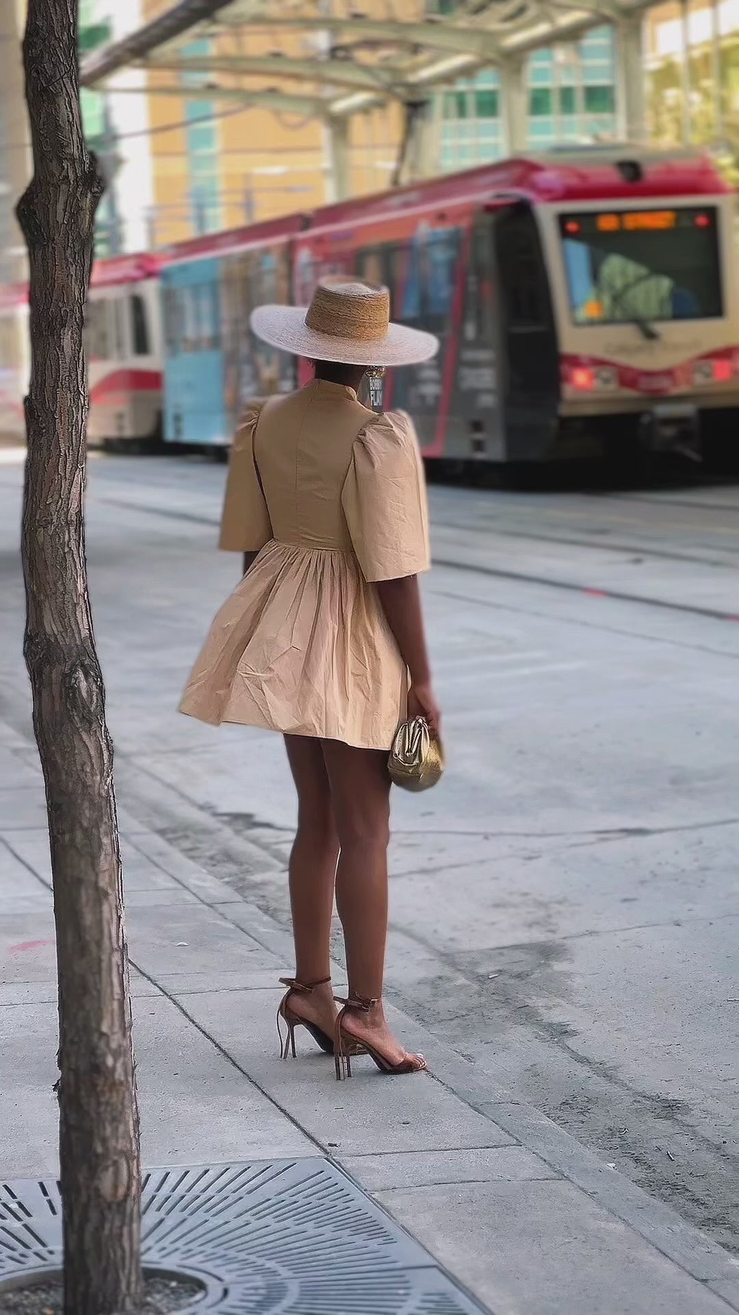 Gozi exaggerated sleeve Cotton Mini Dress In Oat Features